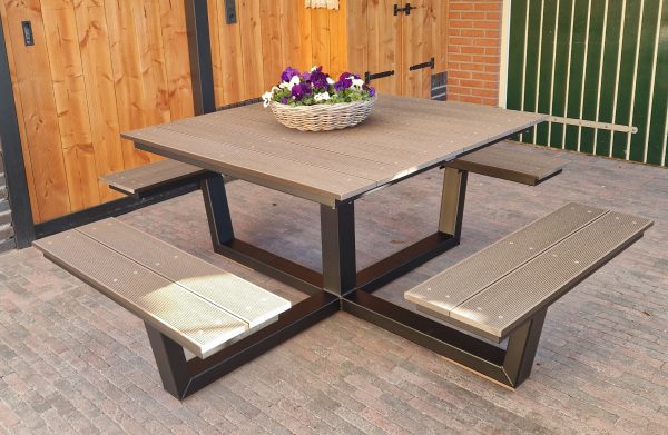 Vierkante picknicktafel van duurzaam materiaal, staal en houtcomposiet