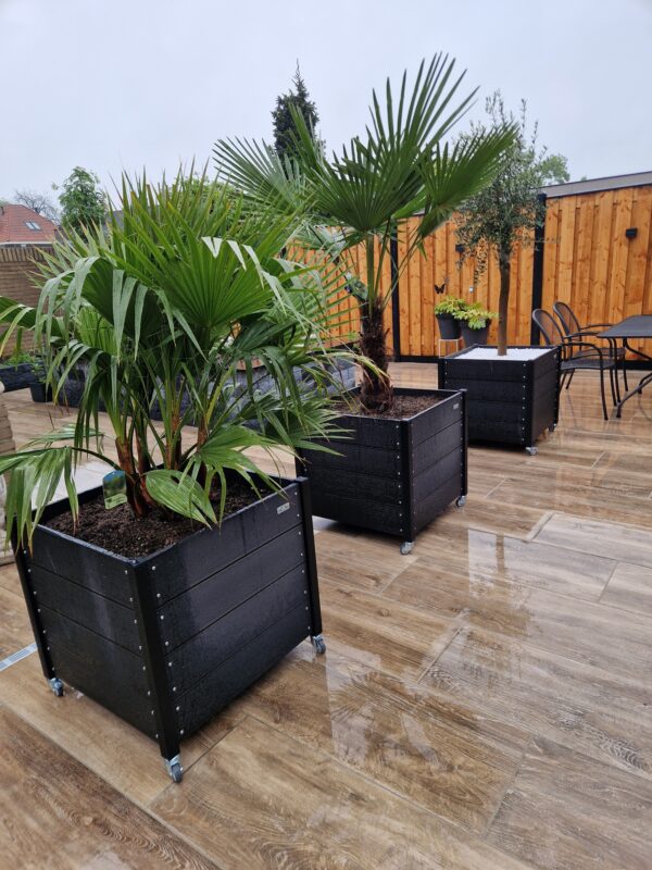 De verzinkte zwenkwielen kunnen onder de bloembakken met 4 hoeken. Mocht je bij de lange bakken van 2 meter wielen wensen, dan aub even contact opnemen. Je hebt dan 6 stuks nodig ipv 4.